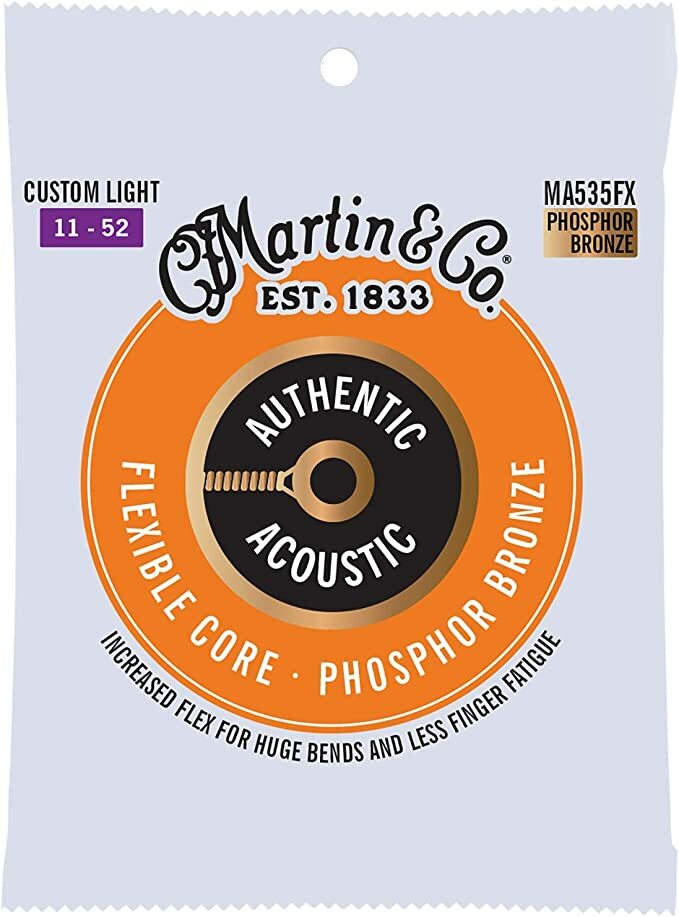 MARTIN & CO MA535FX Authentic Acoustic Flexible Core Phosphor Bronze Custom Light 11-52 will bring out the best in any acoustic guitar. Get long-lasting, super comfortable, incredibly playable strings that take your tone to new sonic heights.
