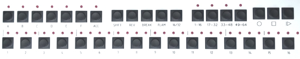 - 16-step sequencer with step function between steps for a total of 128 steps, LED step display