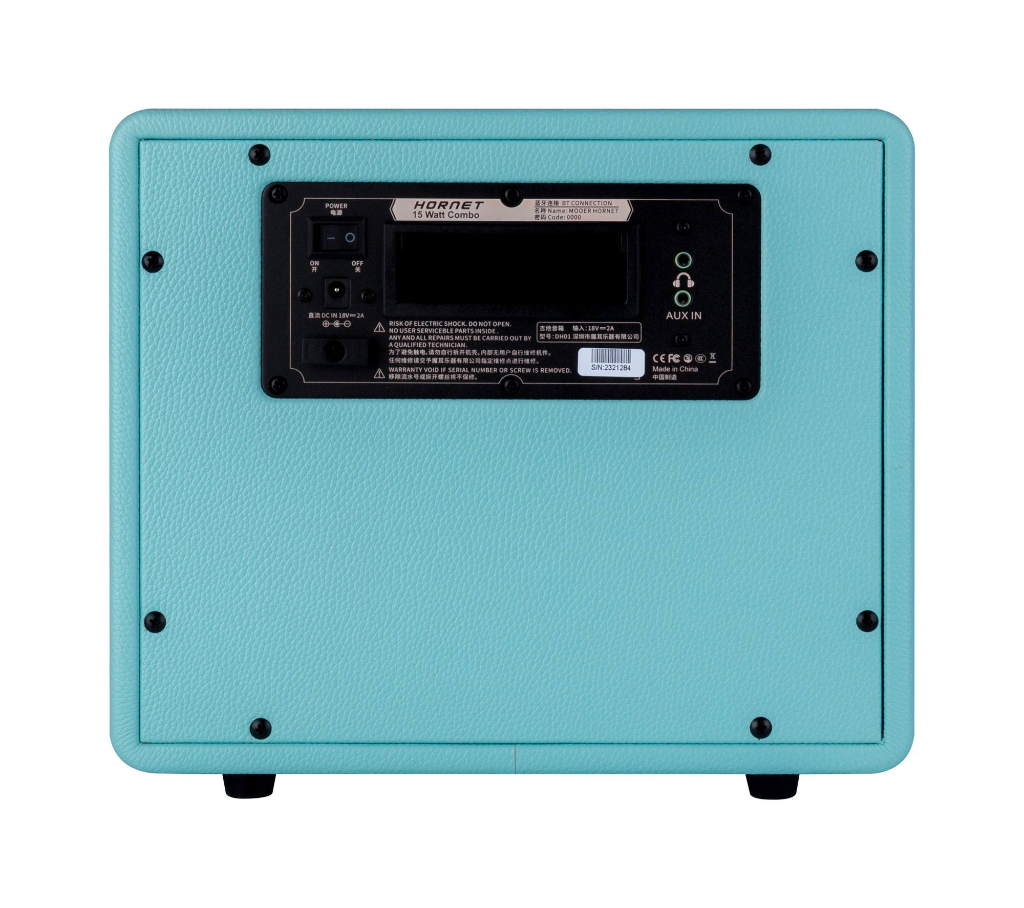 Each amp in the HORNET series has two control modes, namely LIVE (parameters WYSIWYG) and PRESET (parameters can be stored as presets) modes. The 9 amp simulations have adjustable gain, three-band EQ, and individual volume as well as delay and reverb modules that can be independently controlled using TAP Tempo in real time. In addition, the HORNET series has a built-in high-sensitivity tuner and a Bluetooth playback function with adjustable volume levels and includes a headphone out jack for silent practice.