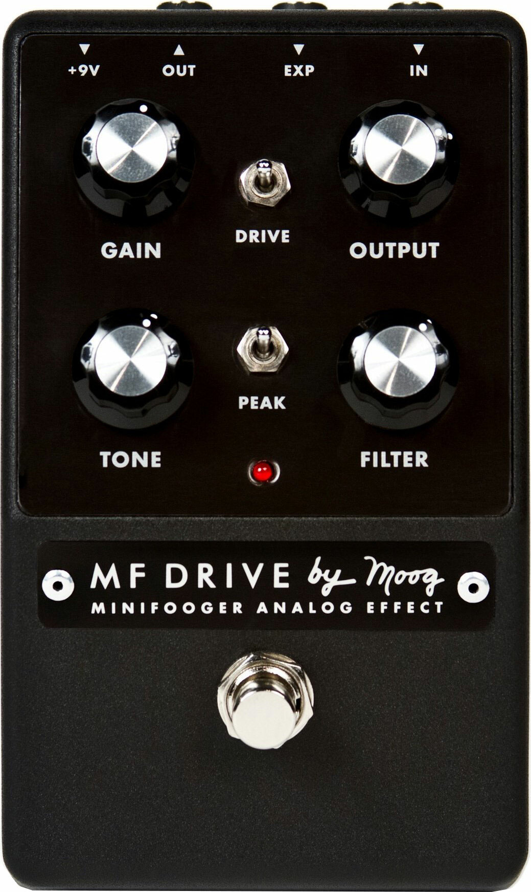 The MF Drive is a unique, filter-based overdrive pedal that employs a Moog Ladder Filter, boutique FET amplifiers, and classic OTAs in its drive section making it highly reactive to input gain and picking dynamics. The bi-polar tone control and sweep-able filter work with input gain to offer each player completely customizable sounds from creamy British overdrive to cranked American tube amplifier and even fuzz. When the filter Peak switch is engaged and an expression pedal is connected, the harmonic content is shifted to the filter’s cutoff position adding tonal and dirty wah performance possibilities not found elsewhere.