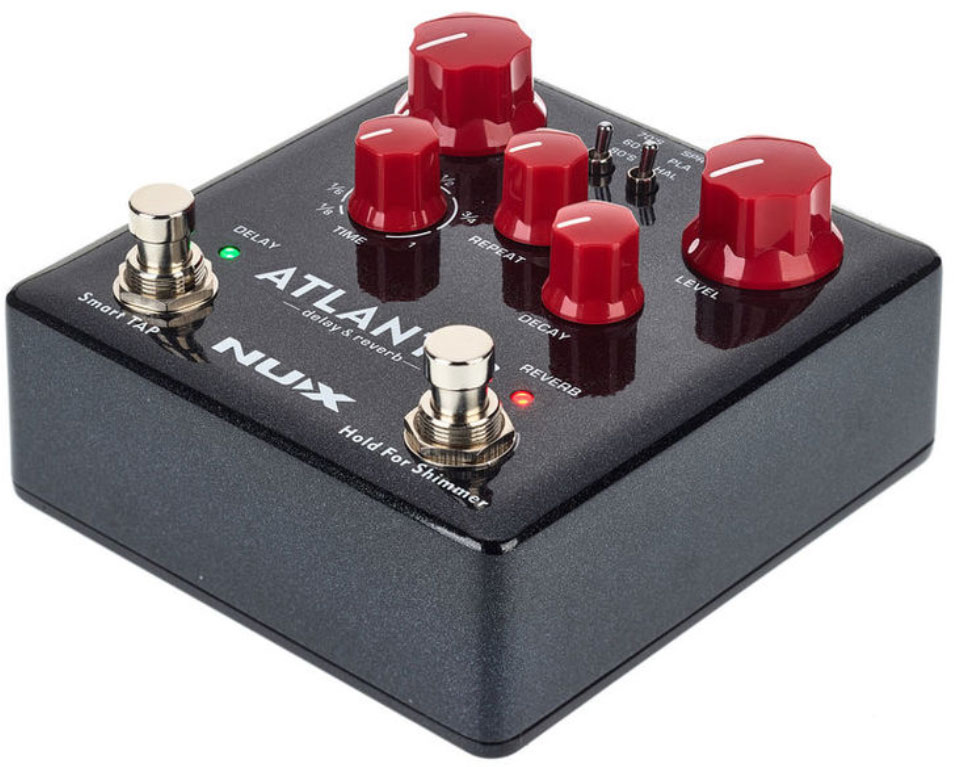The NUX Verdugo Series Atlantic NDR-5 Delay & Reverb compact effect pedal covers several Delay and Reverb types that are very representative in history : 60's Tape-Echo, 70's BBD Analog Delay, 80's Digital Delay, Spring Reverb, Plate Reverb and Hall Reverb.