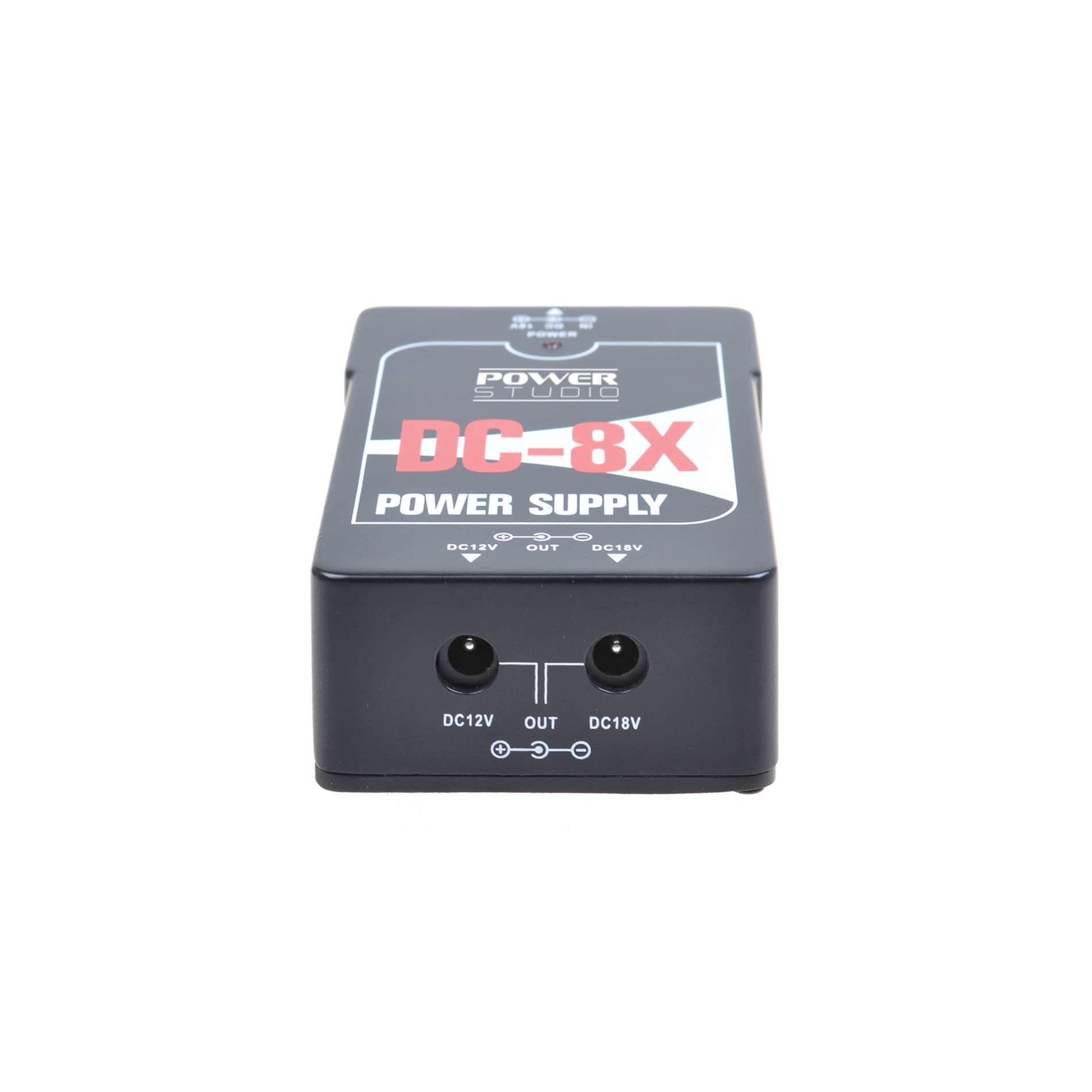 The DC-8X is a perfect device for connecting your various guitar or bass pedals to a single power supply. Easy to use and compact, it provides enough power to power 10 pedals, without monopolizing your pedal board. The 9V outputs are 8, one of 18V and one of 12V.