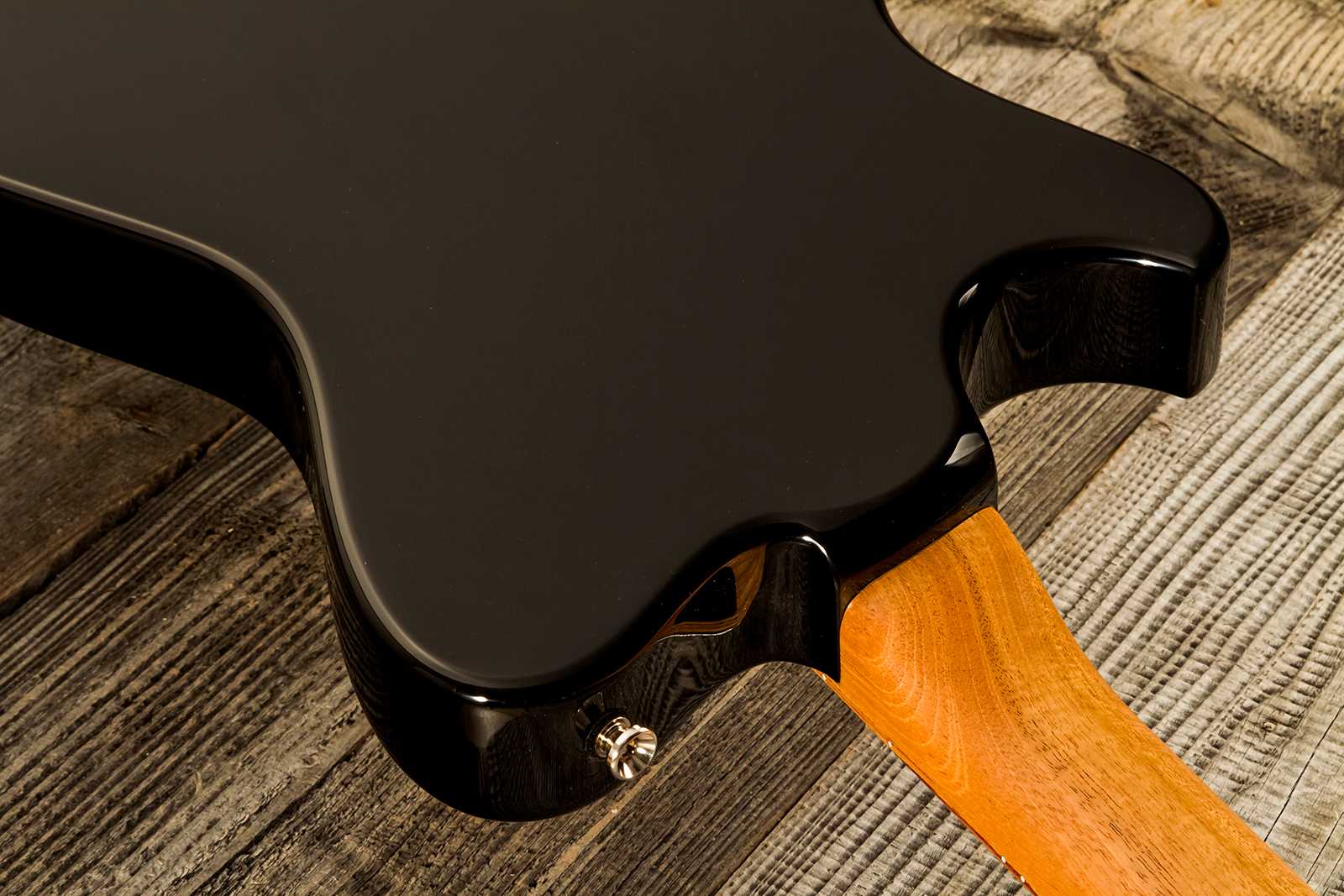 Like a surfboard or roadster, every line was considered both for its looks and its handling. This is a fully enclosed, slim hollowbody design.