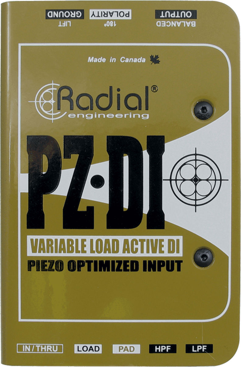 The Radial PZ-DI is a unique direct box that is designed specifically for acoustic and orchestral instruments.Unlike most direct boxes, the PZ-DI allows you to match the input impedance of the source to optimize frequency response, dynamics and feel for a more musical result. The 3-position impedance adjustment switch is the focal point of the PZ-DI: The 1 meg ohm position provides the typical impedance available on most active DI boxes. The 10 meg ohm position is used to compensate for the harsh sound that usually emanates from piezo equipped instruments.In addition, a variable high-pass filter allows you to 'sculpt' the instrument by gently attenuating low frequencies, eliminating any unwanted resonance. You can, for example, keep the low end of the spectrum on a cello, but have this filter work to better suit a violin. On active instruments, such as acoustic guitars with a preamp, you can engage this filter for a smoother, more natural sound.To optimise signal handling and reduce distortion, the PZ-DI incorporates an innovative DC power supply that converts phantom power to provide more headroom. This provides a comfortable dynamic range for acoustic instruments. For high level sources, such as active bass or digital keyboards, simply activate the -15dB pad. The Radial PZ-DI also features a 180° polarity switch and a ground lift.