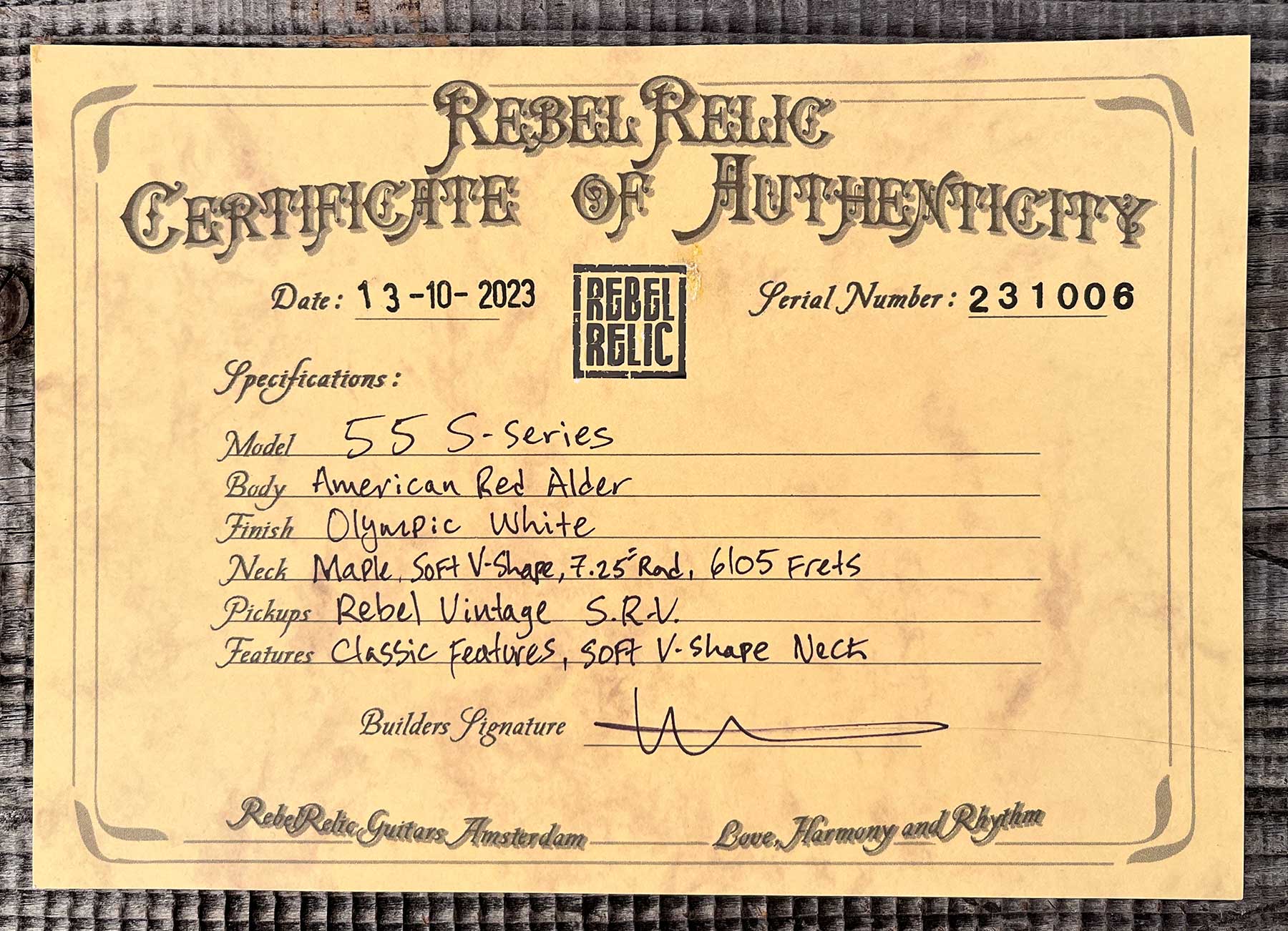 100% hand built in Holland, the REBELRELIC S-Series 55 #231006 solid body electric guitar is without no doubt one of the best looking/sounding vintage inspired model you can imagine.