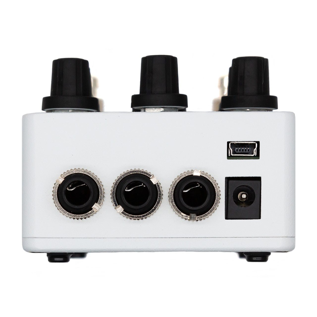 Particle 2 is a complete redesign, incorporating many improvements for live use and better sound quality. The enclosure is smaller, 3” wide with all jacks on top. 127 presets can be stored. The active preset and bypass state are remembered, eliminating pre-show adjustments. Delay time has been extended from 900 ms to 2500 ms, at a higher sampling rate. Tap tempo allows delay time, LFO rate, grain size, and density adjustment with independent note divisions. The expression pedal is assignable to any combination of knobs, and our DIY-friendly Remote 4 switch allows foot control while the Particle sits at table height for knob tweaking. The eight modes can be combined to explore more granular synthesis territory, and MIDI (via USB) gives access to additional parameters.