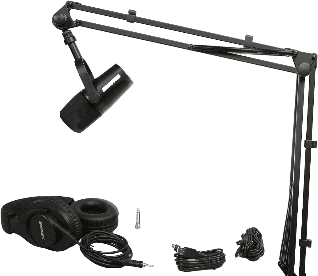This pack includes 1 Shure MV7-K microphone + K&M articulating stand + Shure SRH440A-efs headphones.