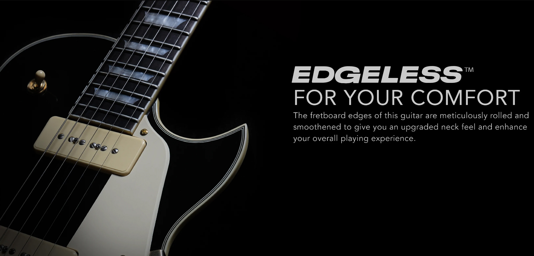 - Ebony fingerboard (rolled fretboard edges), 22x medium-jumbo frets