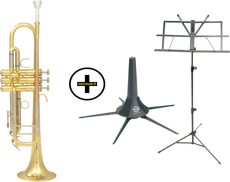 This pack only offered by Star's Music allows you to get started on the trumpet and contains an SML Prime series trumpet, a stand and a music stand for musicians.