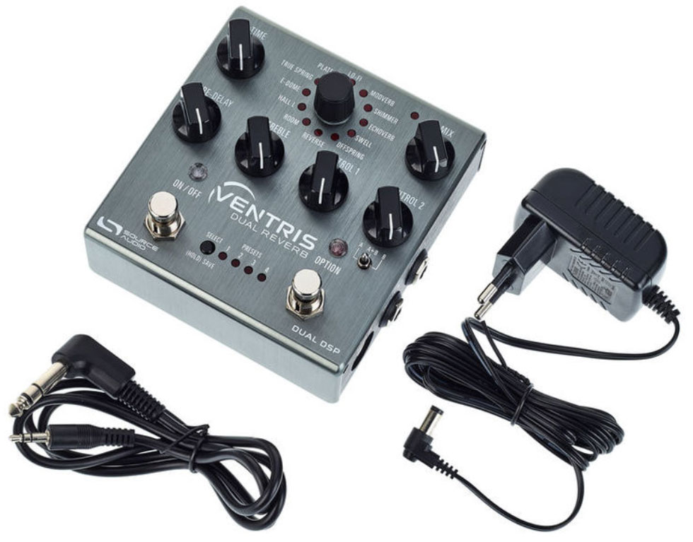 - Dual Reverb Processing — The Ventris Dual Reverb features two independent signal processors giving the pedal essential features like preset spillover and dual reverb effects.