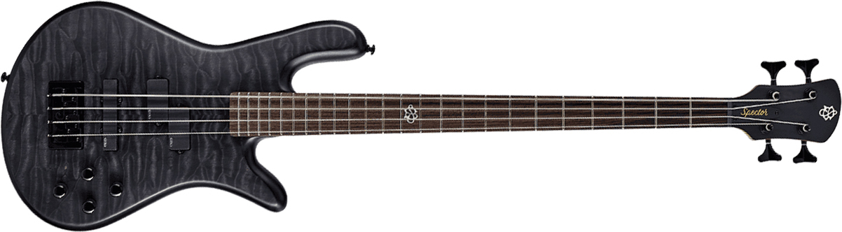 The SPECTOR NS Pulse II 4 (NSPULSE4BSM) solid body electric bass with active electronics represents the core of Spector’s iconic design. The three-dimensionally carved body is a trademark of the Spector brand and provides a uniquely comfortable playing experience for all bassists. The NS Pulse II basses feature a highly figured Quilted Maple top and Swamp Ash body paired with a three-piece Roasted Maple bolt-on neck, complete with a Macassar Ebony fingerboard. The roasting process results in a neck that provides enhanced stability & resonance, while the Macassar Ebony fingerboard ensures clear note definition and projection. This model is also equipped with EMG active pickups and the Spector TonePump Jr. active pre-amp. This combination yields a range of impressive & aggressive noise-free tones. Additional features like a locking bridge, illuminating side dots, and a custom 12th fret inlay round out an already impressive feature set. NS Pulse II basses are available in three distinct colors, Black Cherry, Black Stain, and Ultra-Violet, each with a durable matte finish.