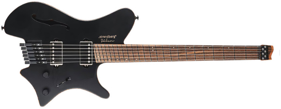 The STRANDBERG Sälen Jazz NX 6 (Black) semi-hollow body electric guitar takes a whole new direction – both visually and sonically – with chambered Mahogany body capped with solid Maple top and Mahogany veneer, Mahogany neck with Rosewood fretboard, F-hole, and a pair of .strandberg* MF Classic humbuckers.