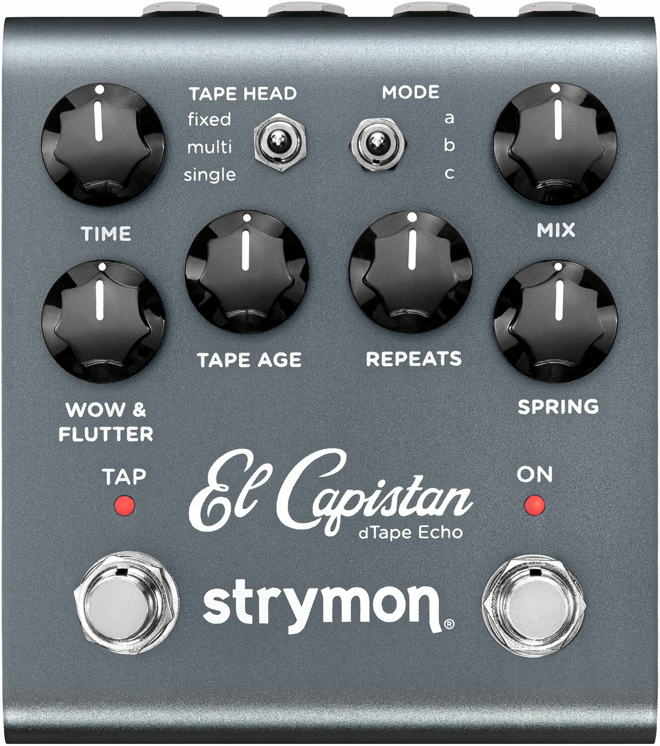 STRYMON El Capistan dTape Echo V2 compact effect pedal provides three different tape machine types in one pedal, each with three unique modes and extensive control over tape quality, machine health and tone shaping.