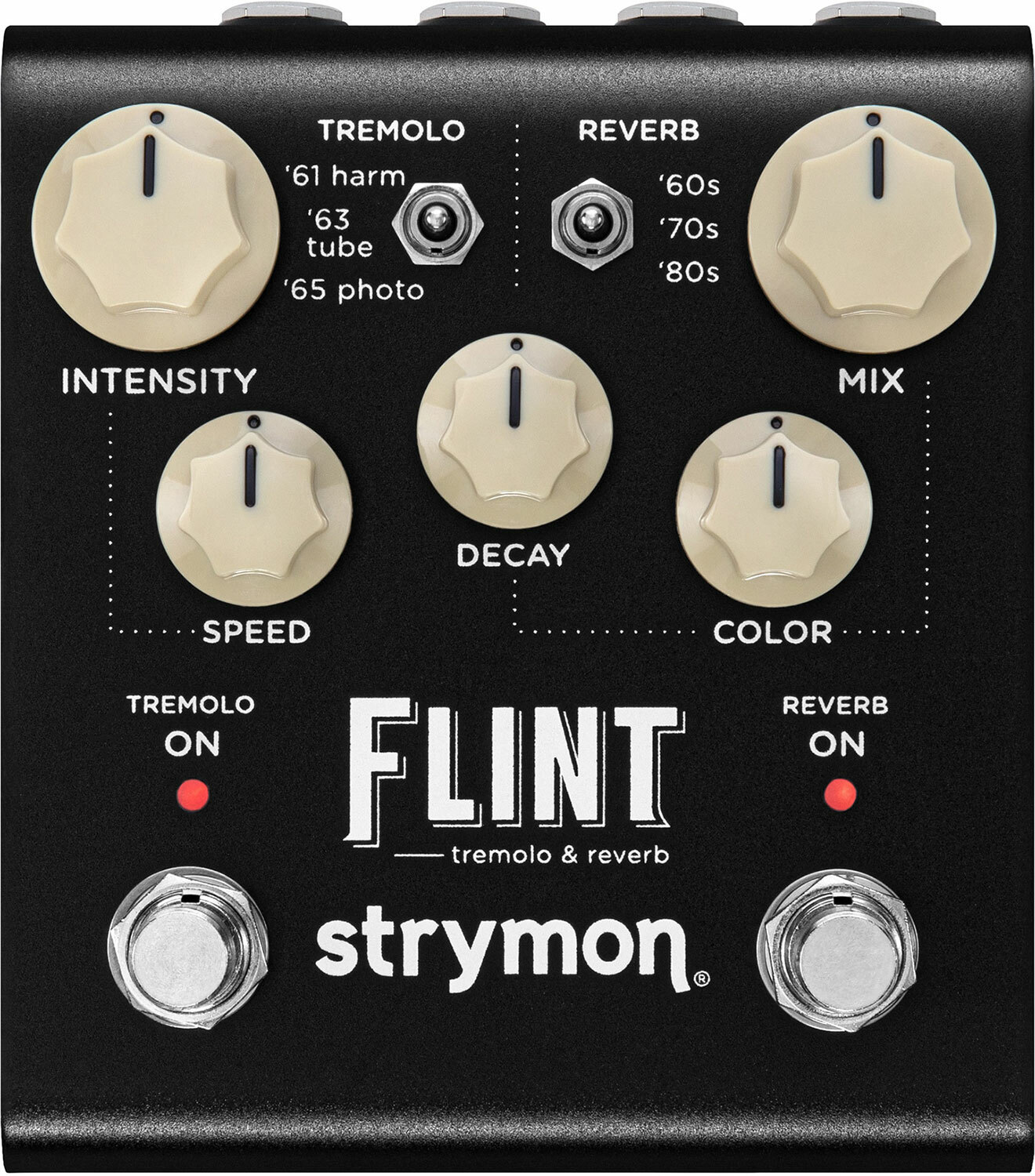 STRYMON Flint Tremolo & Reverb V2 is a studio-class effects pedal that delivers this classic combination. Strymon team carefully studied our favorite classic tremolo and reverb circuits, examined the sonic complexities and faithfully accounted for every detail in hand-crafted algorithms. Flint is essentially two pedals in one, with tremolo on one half and reverb on the other.
