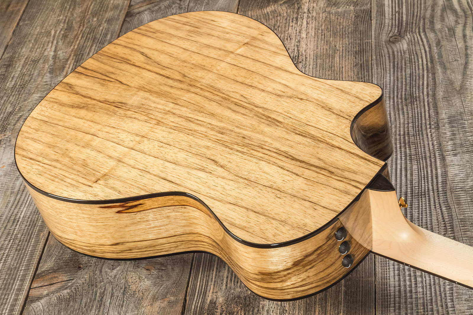 Sitka Spruce is the common choice for top wood on most acoustic guitars. Offering combination of strength and elasticity which translates into a broad dynamic range, Sitka Spruce has a punchy direct sound, yielding crisp articulation and allowing for versatile playing, from dynamic strumming, flatpicking or fingerpicking.