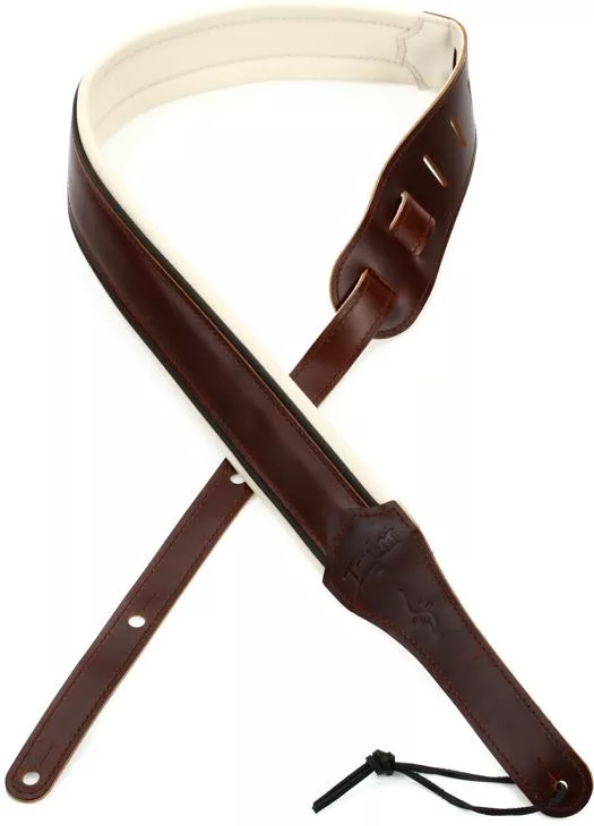 - Cordovan leather guitar strap with Black/Ivory leather trim