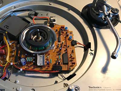 En este tipo de tocadiscos, el sistema que hace girar el plato incluye una banda elástica, una correa montada en un lazo, que conecta el eje del motor con el del plato. Un sistema relativamente simple, menos costoso y musicalmente eficiente para que los audiófilos escuchen en un sistema de alta fidelidad. La correa se estira con el tiempo, lo que conduce a una pérdida de regularidad de rotación. Por lo tanto, los tocadiscos accionados por correa a menudo tienen un arranque algo suave y no necesariamente reaccionan bien a los cambios de velocidad. Baste decir que para el rasguño, es una pérdida de tiempo. Solo serán útiles para escuchar.