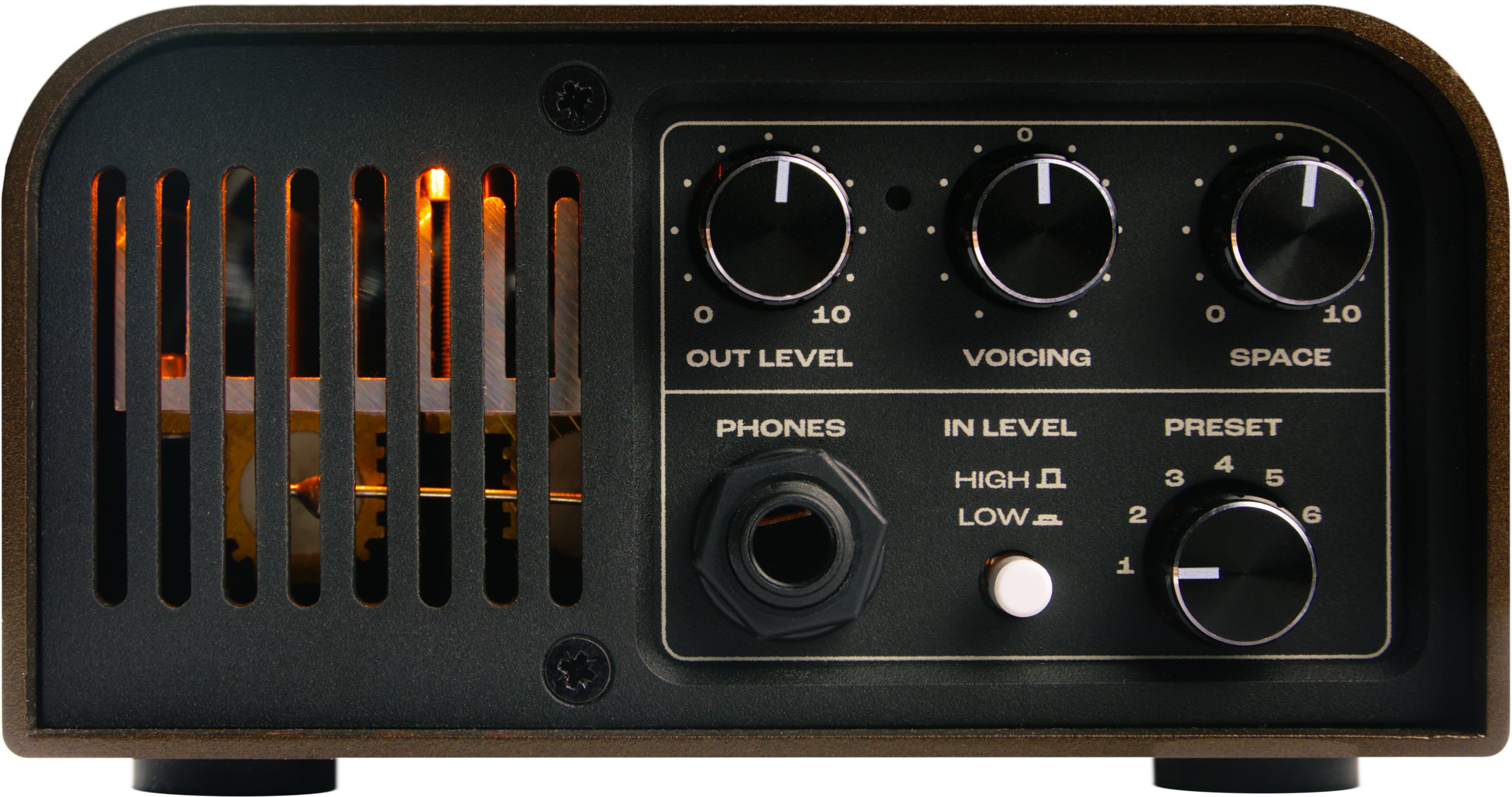 - Tube Amp Attenuator: Home (-38dB), Club (-20dB), Stadium (0db).