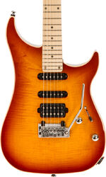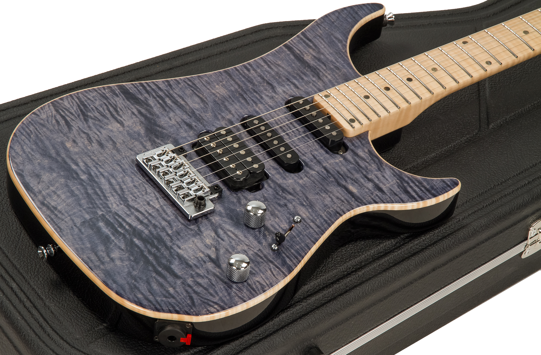 Using a traditional platform (Alder body, figured Maple top, Maple neck, Maple or Rosewood fingerboard, 25,6" scale), it's a versatile instrument thanks to its Dimarzio HSS pickup configuration (Vintage DP415 + Virtual PAF) and 24 frets allowing extended playing range.