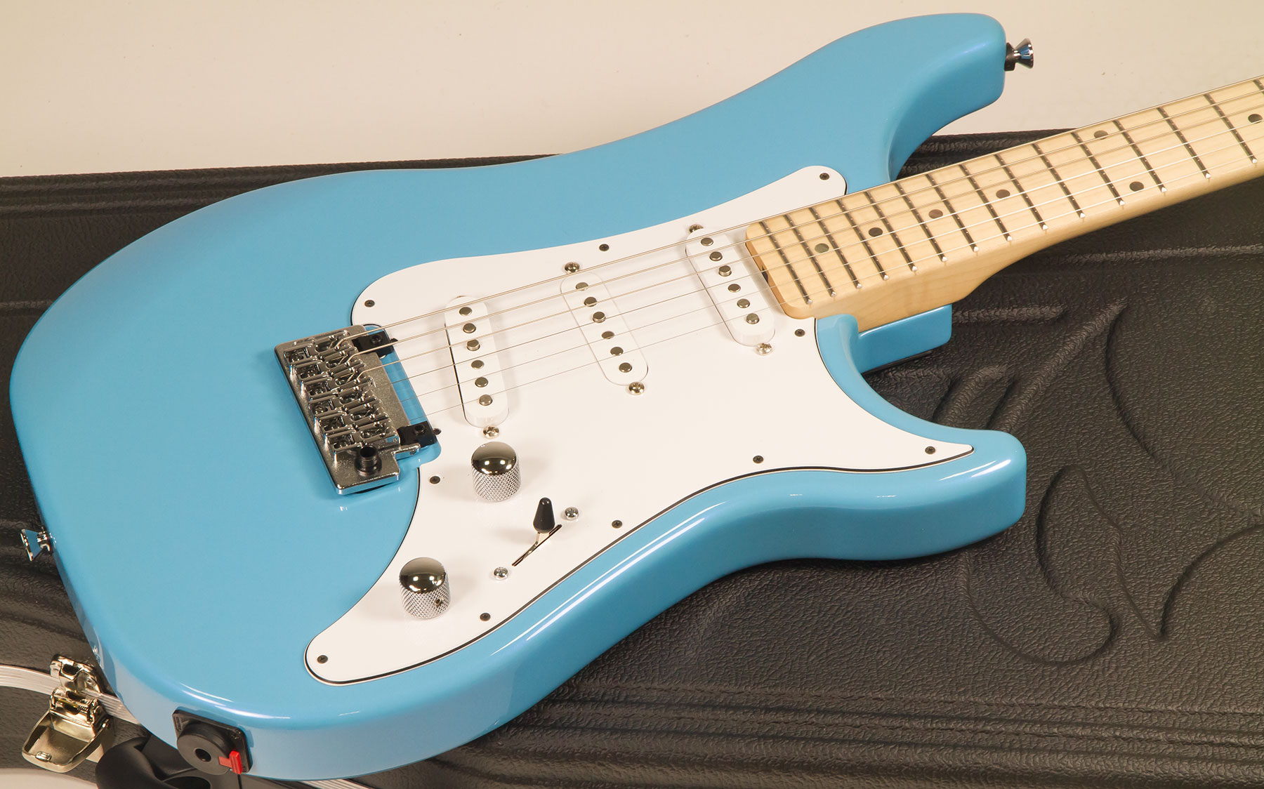 Features a traditional platform (Alder body, Maple neck, Maple or Rosewood fingerboard, 25,6" scale, 22 frets), Vigier Amber True-Vintage single coil pickups