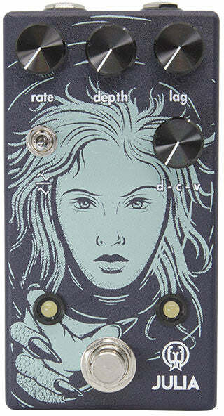 The Julia is a fully analog, feature-rich chorus/vibrato packed with a wide array of tonal landscapes begging to be explored. Updated for 2020, Julia now has top mounted jacks, soft switch bypassing and updated art from Adam Forster.
