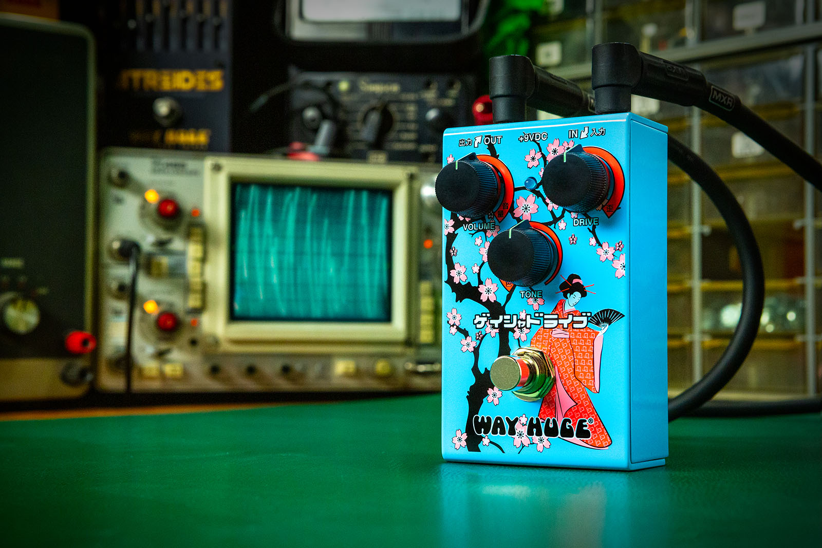 The Way HugeWAY HUGE Limited Edition Smalls Geisha Drive WM32B Blue creates a wide range of dynamic, touch-sensitive tones that can be dialed in from overdrive to distortion territory by adjusting your guitar’s volume knob.