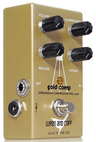 The WREN AND CUFF Gold Comp Compressor compact effect pedal for electric guitar really is a truly special pedal. A year and a half of experimenting, tweaking, redesigning, and testing has resulted in a pedal worthy of the Wren and Cuff name.