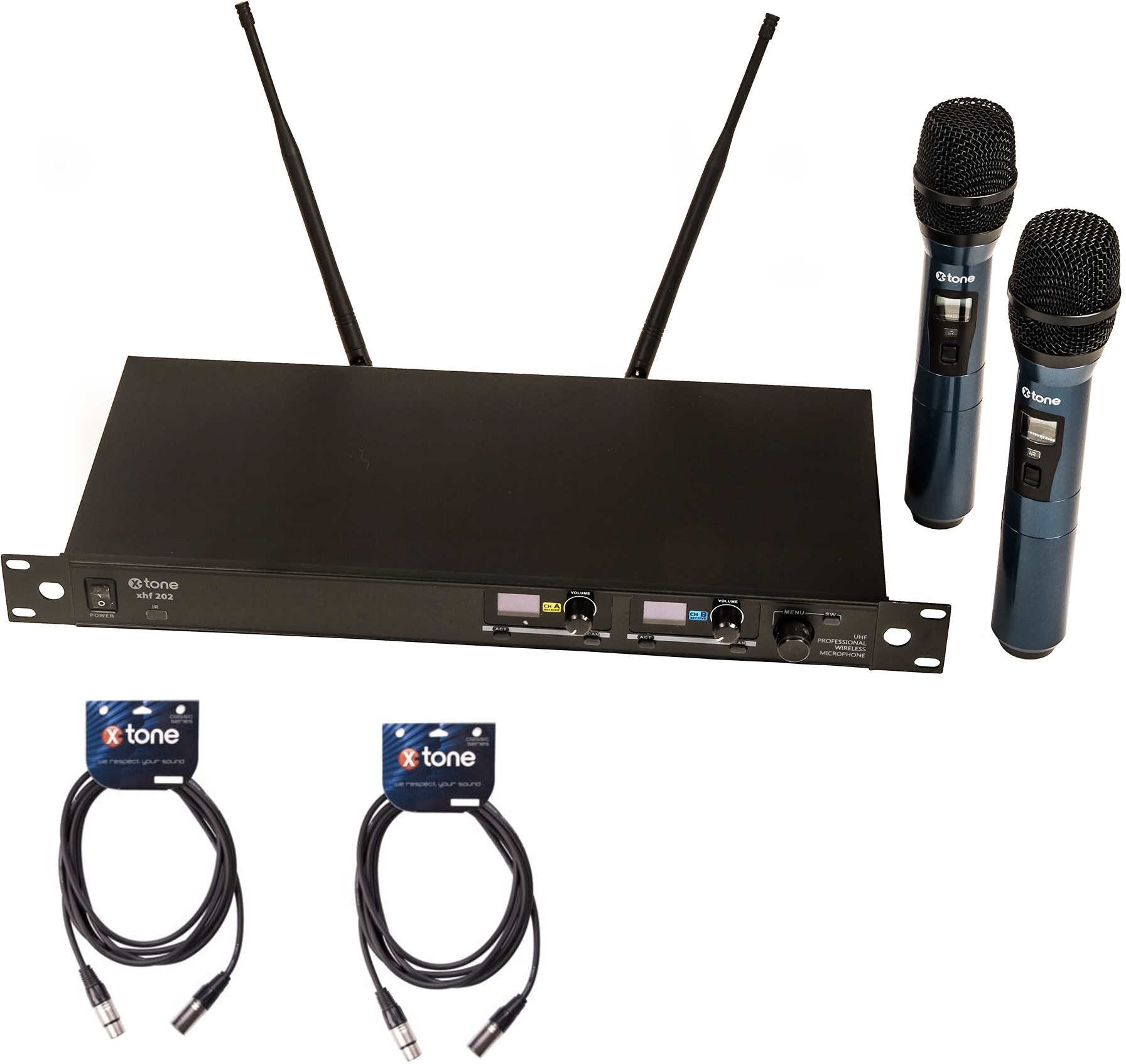 The Xhf 202 is a wireless microphone system with 2 hand microphones from X-tone.