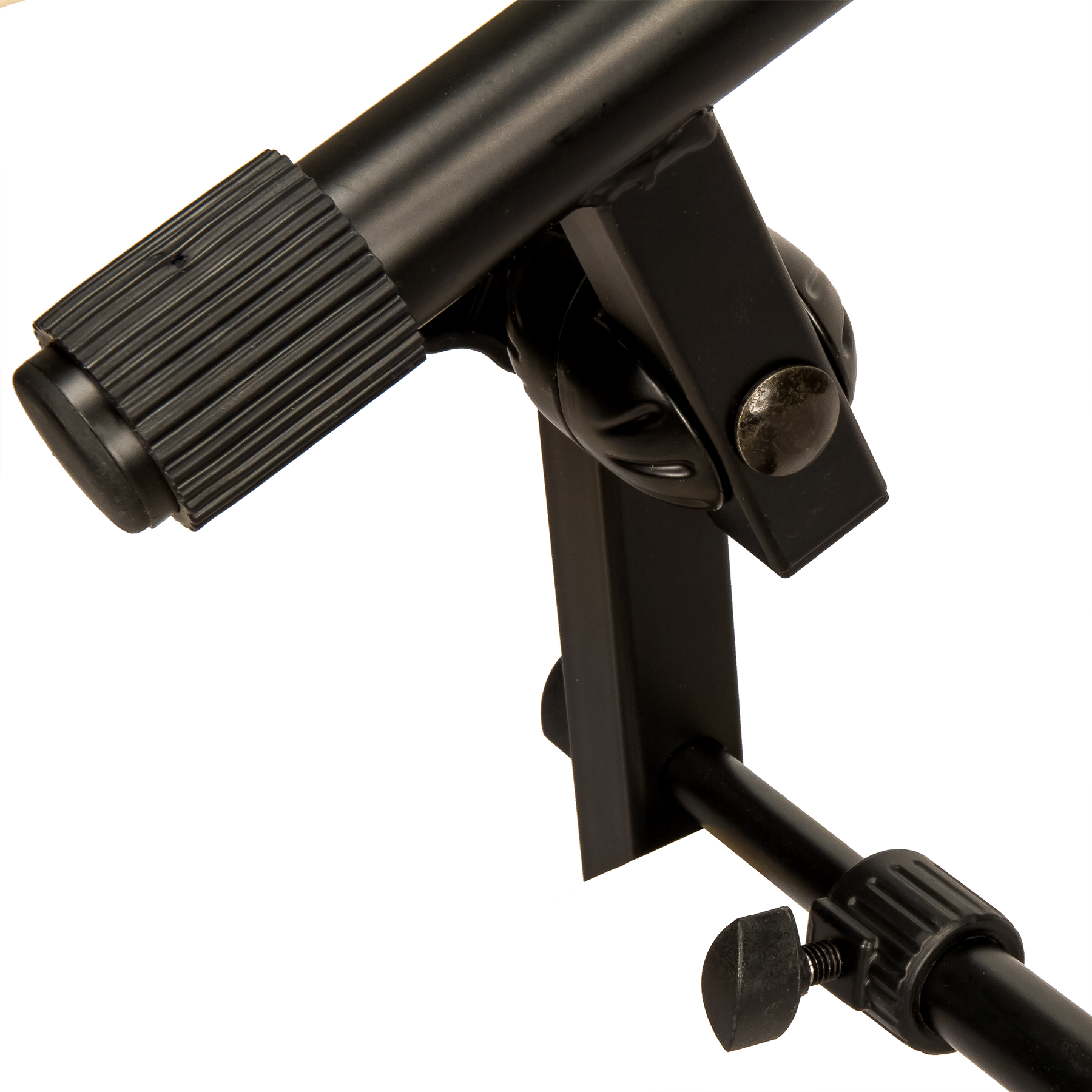 J'aime beaucoup la robustesse et la stabilité des roues crantées (dentées plutôt) qui permettent de baisser l'angle du synthé posé sur l'extension. C'est bien solide et le serrage est ferme.