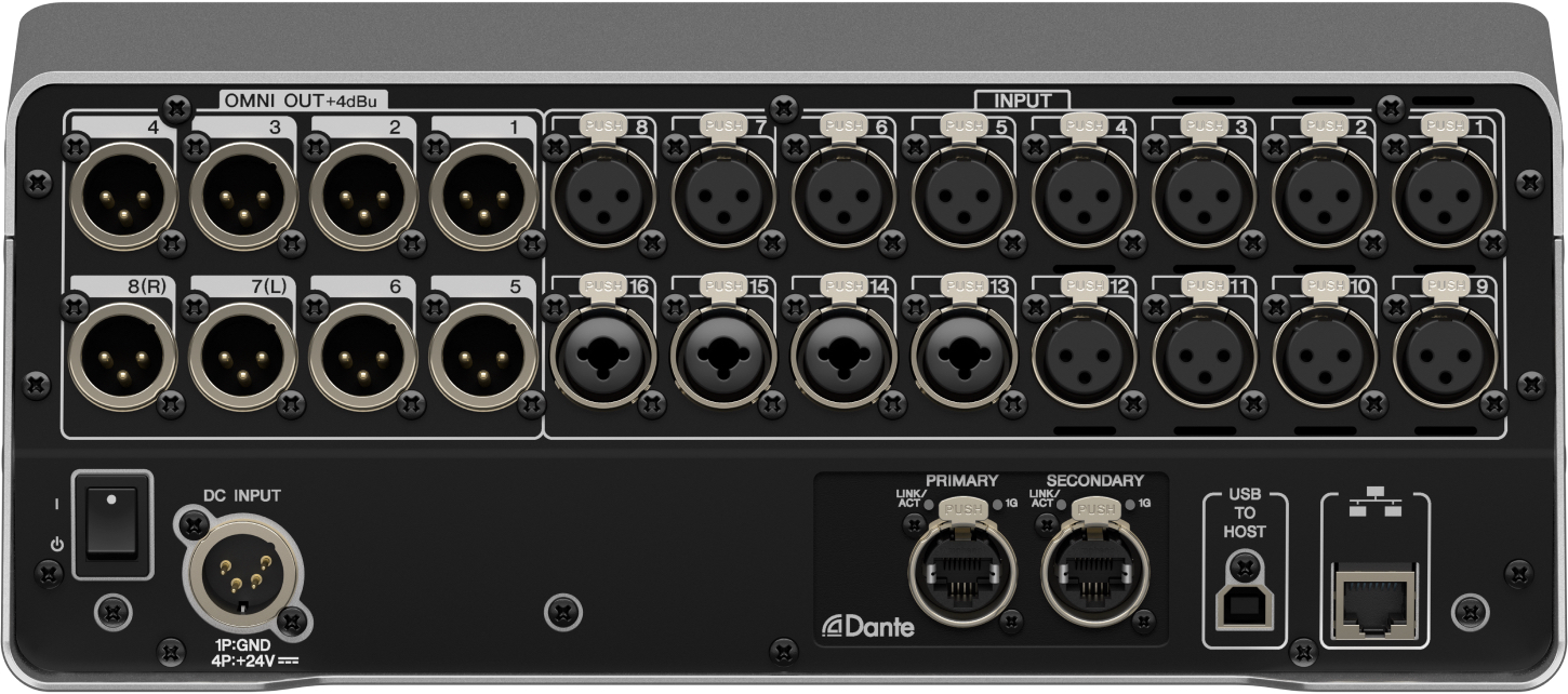 - 16x16 Dante audio interface (2 EtherCON Prim./Sec.)