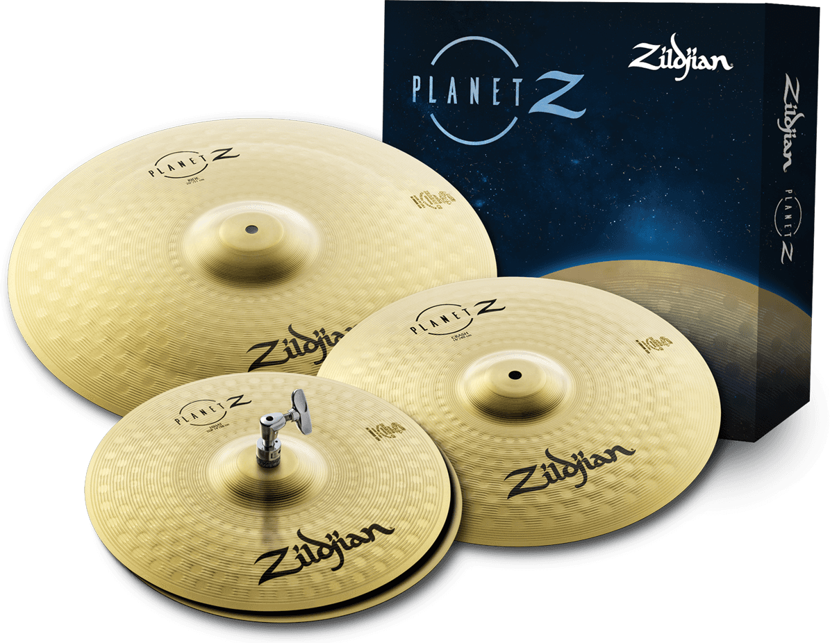 The Planet Z Complete Pack gives you all the standard sizes in one convenient package. Tackle any style of music with a full-sized 14" hihat pair, a 16" crash cymbal, and a full-sized 20" ride.