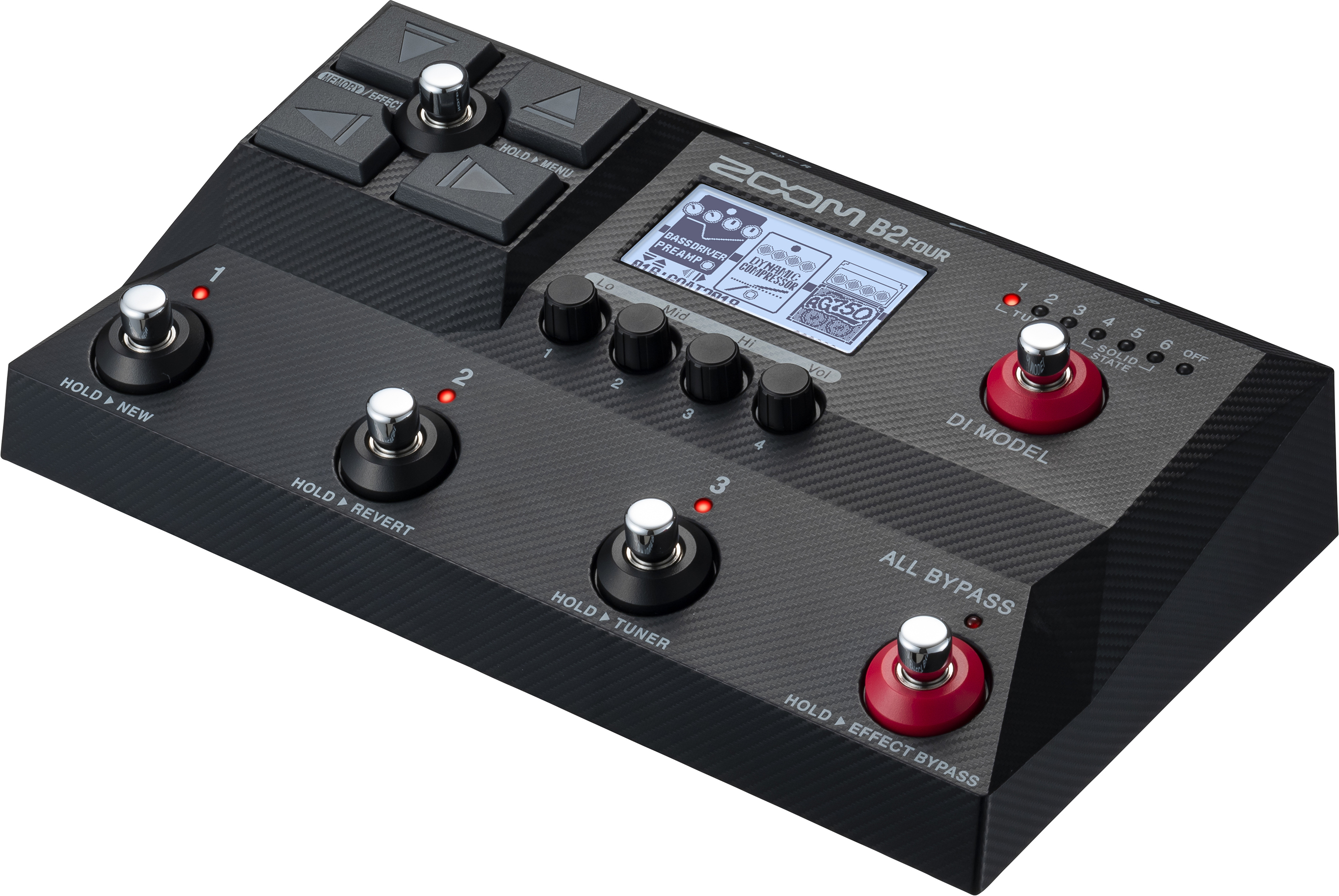 Introducing the B2 FOUR Amp and Effects Emulator, powered with Zoom’s Multi-Layer IR technology and 6 iconic DI models. Now you can craft the perfect low-end tone. Build patches from 104 effects, including models of famous boutique effects and preamps. Mix and match up to 5 effects and amps simultaneously to build your own custom patches.