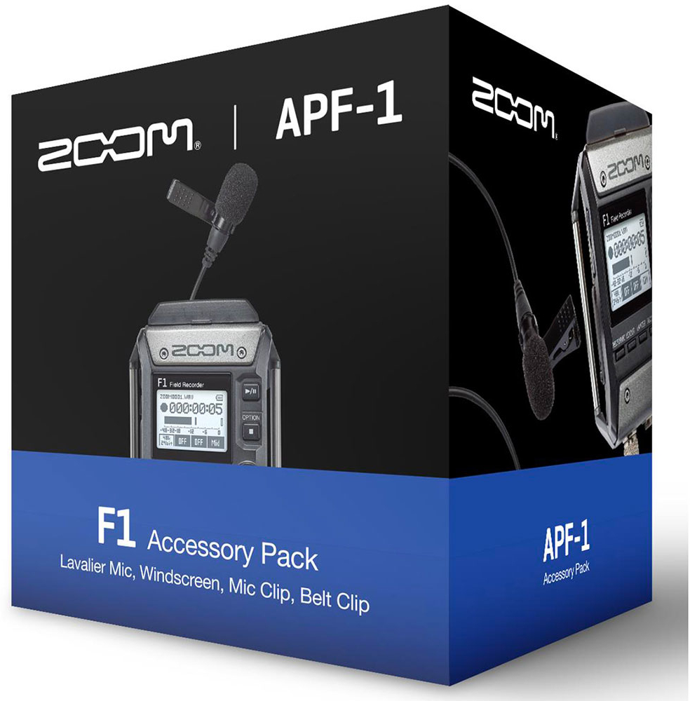 The ZOOM APF-1 pack consists of a lavalier LMF-2 lapel microphone, a WSL-1 lavalier windscreen, a MCL-1 lavalier micro plier and BCF-1 belt clip.